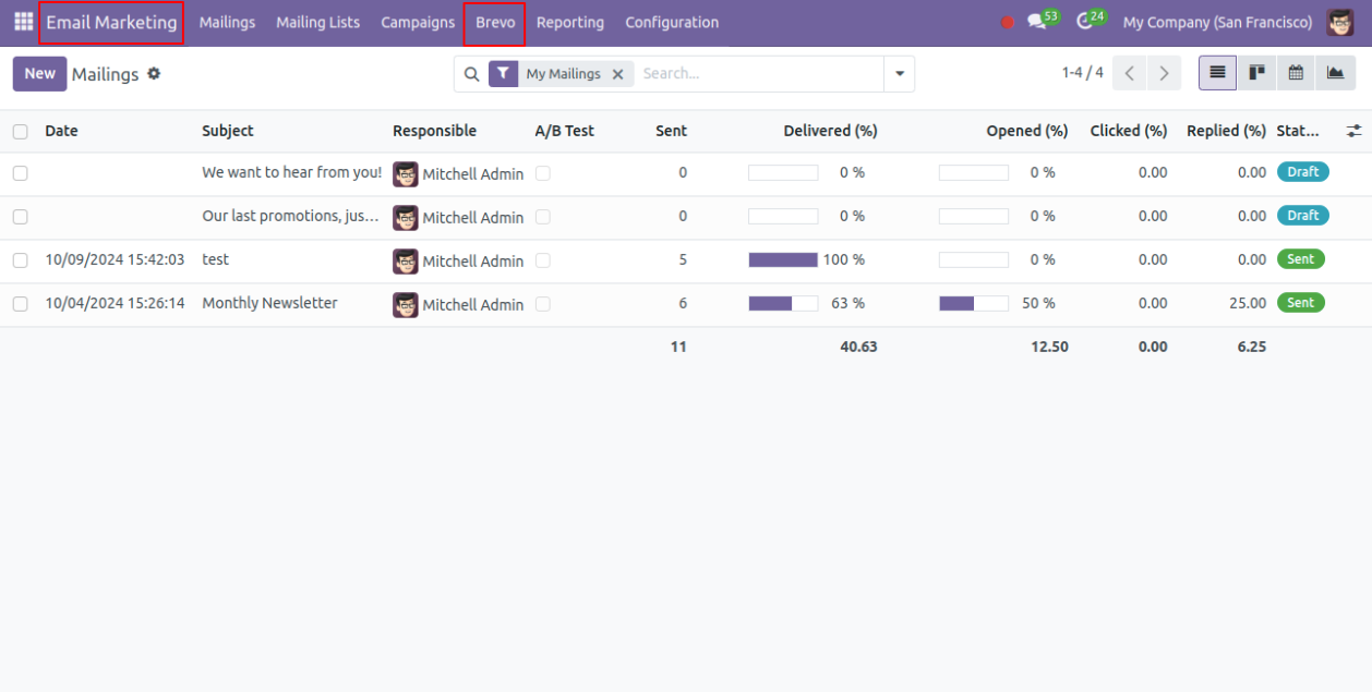 ◆ View Statistics Of Imported Campaign From Brevo In Odoo. 🔥