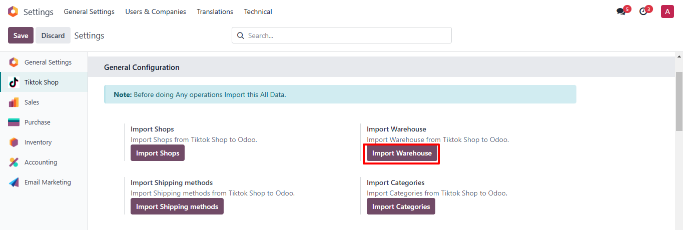 ◆ Click on button Import Warehouse To fetch Warehouses From Tiktok Shop.