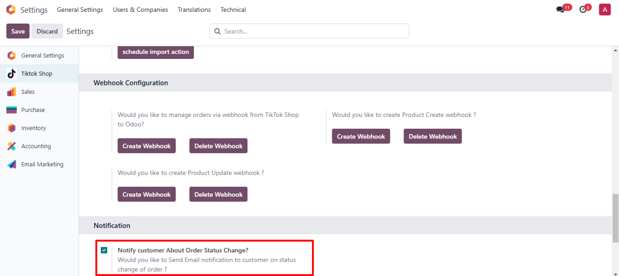◆ You'll receive real-time updates for order or product changes, and Odoo will automatically reflect those changes.
