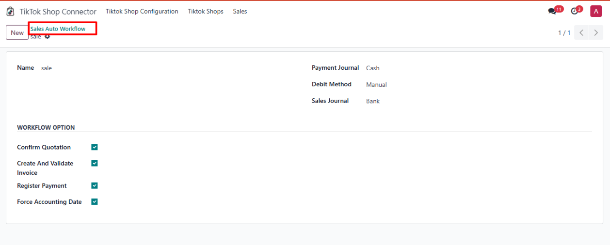 ◆ Navigate to Tiktok shop Connector>>Sales >>Sales Auto Workflow.