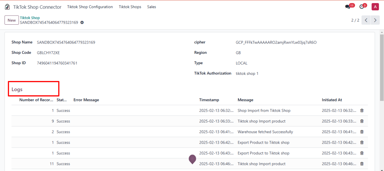 ◆ Navigate to Tiktok Shop Connector>>Tiktok Shop>> Here you can find imported Shops.