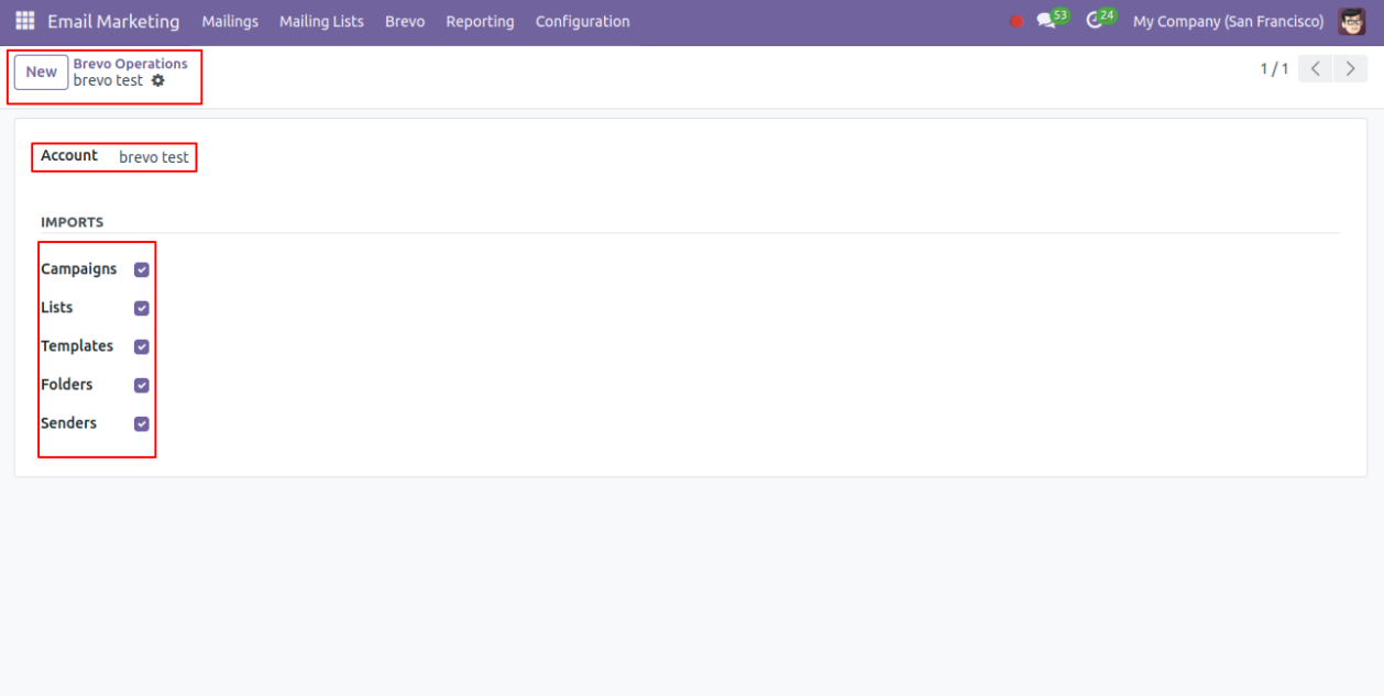◆ Create new operation ✅️select the account and import all fields which will be fetched from brevo and created the records in the respective menu in odoo accordingly.
