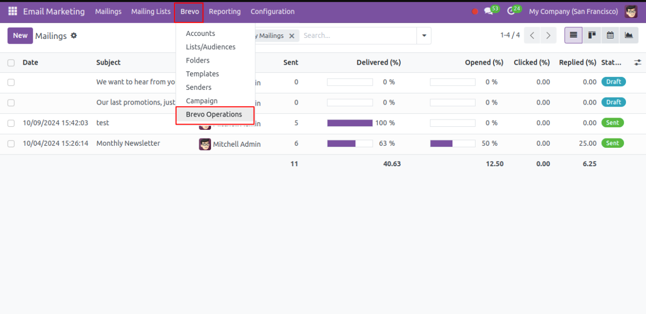 ◆ View Statistics Of Imported Campaign From Brevo In Odoo. 🔥