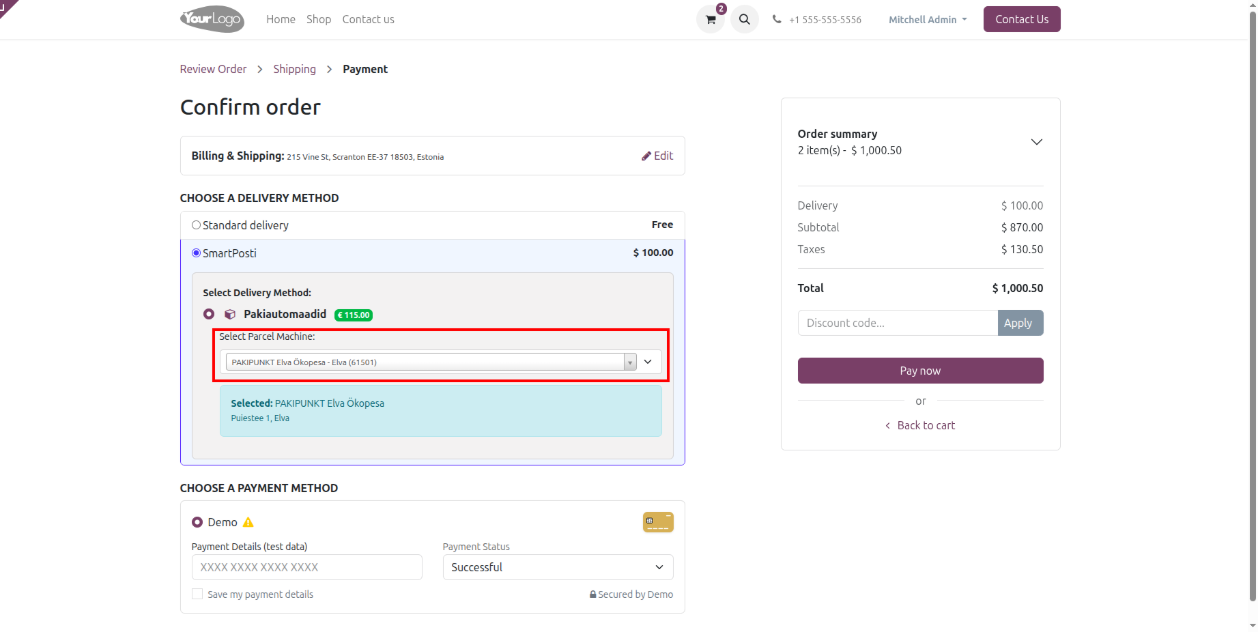 - Later if user change the field Parcel Machine Label with custom label as ex, New Era Delivery these same name will be shown into website checkout page.